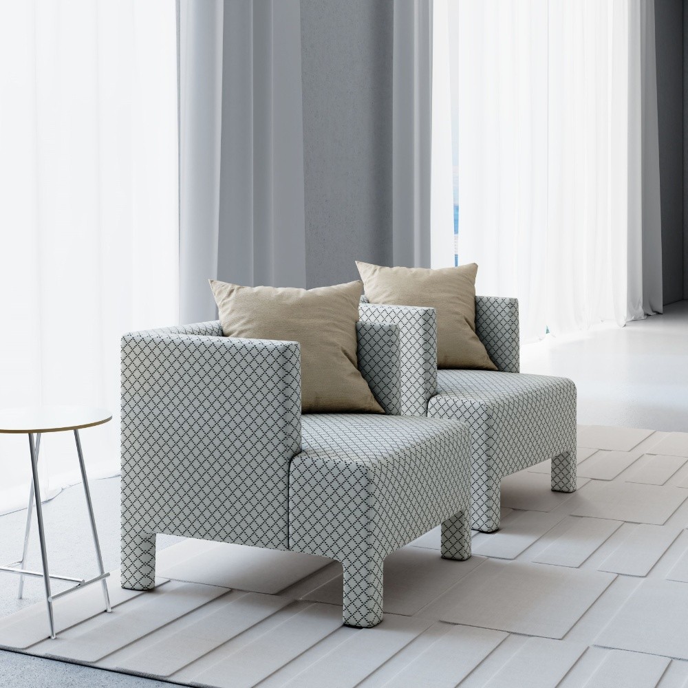 經典的棋盤格紋、千鳥格紋、或是大牌編織感,千百薈設計師應用各種色彩、形狀組合演變,造就了繁多的設計面料,適用于家居整體軟裝。