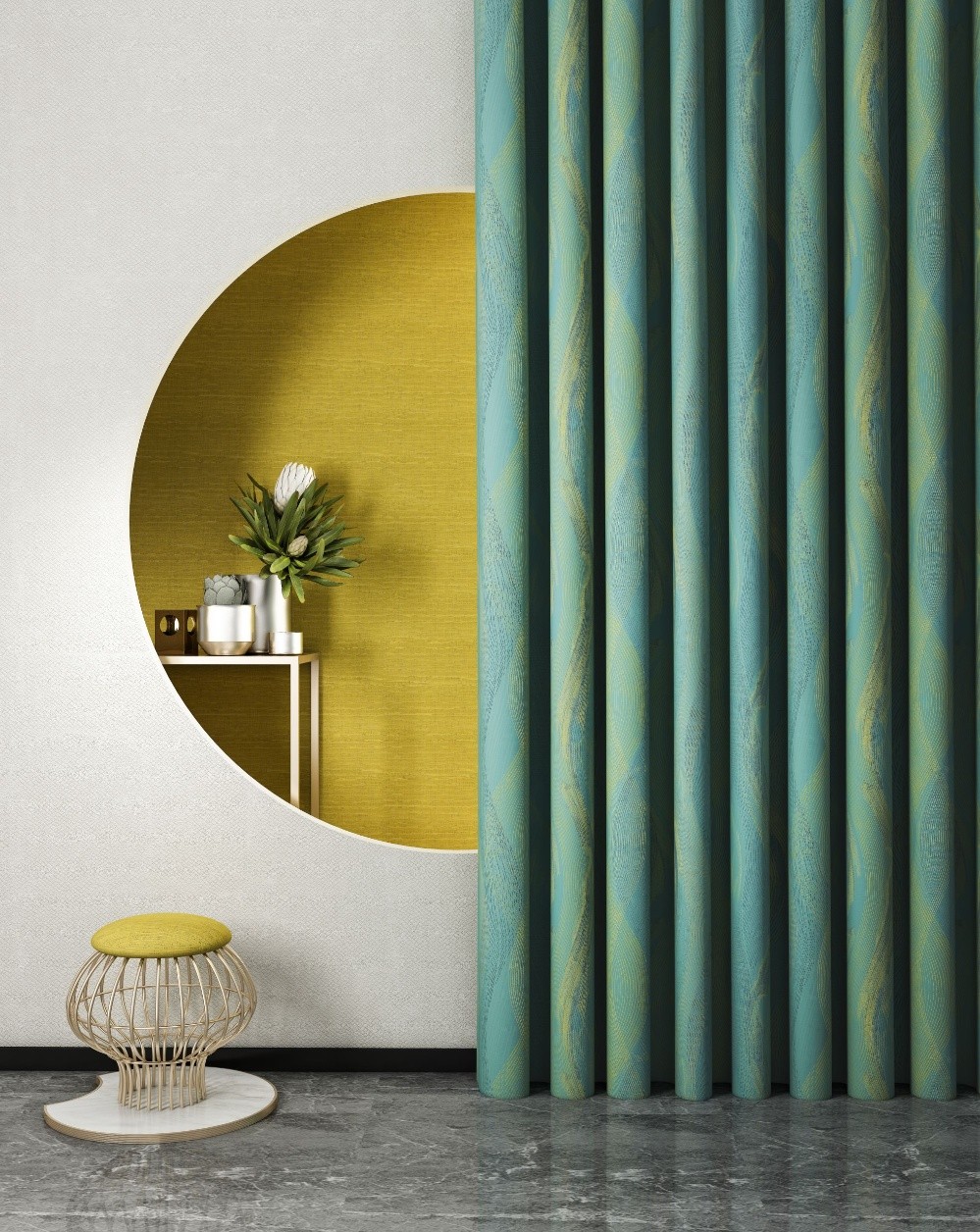 帝國黃高明度,高飽和度,明快活潑,幸福感爆棚。它不含紅或綠的色彩,是極為純正的黃色。作為空間強調色,主要體現在布藝上,作為皇室色彩,帶著與生俱來的高貴氣質。作為秋冬最奢華的主題色,打造完美家居空間必不可少。