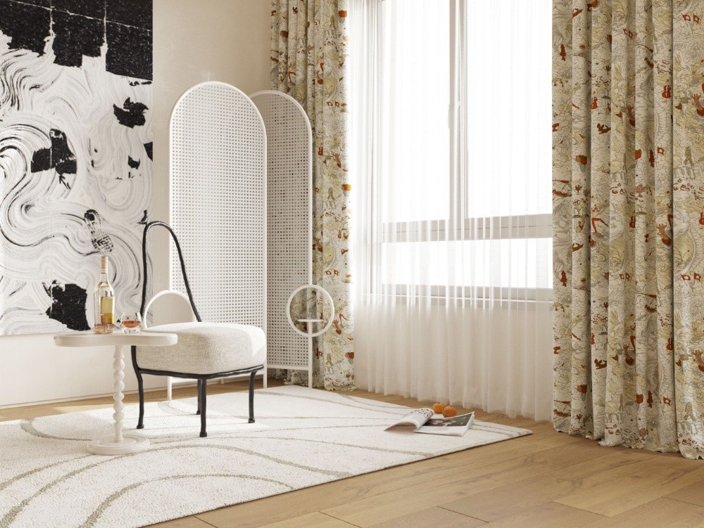 當硬裝采用比較百搭的基礎色系,這時的軟裝就可以適當應用一點黃色,如單椅、沙發、抱枕,或者是大面積的布藝窗簾。給空間亮點,又富有層次感。